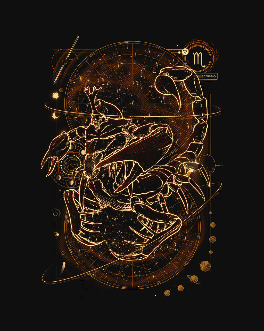 Constellation du Scorpion : Cette constellation occupe l’espace entre le 23e degré du Scorpion et le 26e du Sagittaire. Elle est nommée d’après le scorpion qui réussit à tuer le géant Orion qui s’était vanté de détruire n’importe quel animal terrestre.