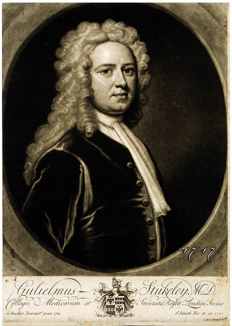 Nous rappelons que la Society of Antiquarians avait été fondée sous le règne d’Élisabeth en 1574 et qu’elle fut interdite par décret de Jacques Ier Stuart en 1610. En effet, l’implication des travaux de cette Society au sein de la controverse de la première moitié du XVIIe siècle tendant à combattre toutes les formes du droit divin au profit de l’établissement d’un droit humain à tous les niveaux de la société, en avait fait un bastion des idées progressistes. L’extraordinaire importance qu’auront les fonds celtiques durant tout le XVIIe siècle repose avant tout sur cette controverse politique et religieuse. Il n’est donc pas étonnant de voir les Antiquarians gyrovagues d’Oxford se fédérer à l’Invisible College puis à la Royal Society entre 1650 et 1662. et il est encore moins étonnant de les voir réunis à nouveau au sein de cette Gentlemen’s Society qui, sans aucun doute possible, est la plaque logistique et de préparation de cette triple naissance de 1717. Un personnage clef va jouer un rôle essentiel et transversal en la personne de William Stukeley, sans doute avec Jean Théophile Désaguliers l’un des plus importants artisans de ce renouveau qui balaie la société anglaise.