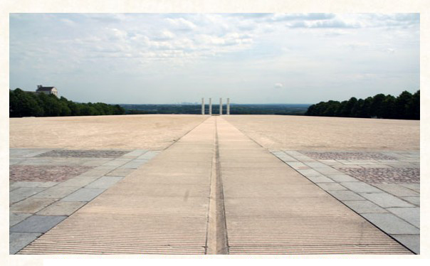 L’Axe Majeur se nourrit d’une multitude de symboles comme le nombre 12 que l’on retrouve dans tout l’ensemble architectural. Après les 12 colonnes voici plus en détail les 12 stations dans le sens Nord‑ouest / Sud‑est, direction de l’Axe..