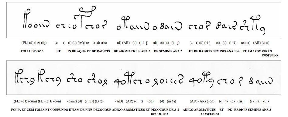 Nicholas Gibbs, qui est un expert en manuscrits médicaux médiévaux, rapporte qu’il en est arrivé à cette conclusion après avoir découvert que le texte était écrit en ligatures latines qui décrivent les remèdes à partir d’informations médicales standard.