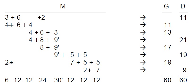 Le premier groupe suit la règle 10+1, 20+1, 20-1, 10-1, tandis que le dernier contient les duplications 3-6, 4-8 et 5-10. Ce type de suite ne s’applique plus au dernier couple 5-7, ce qui fait déjà douter de la thèse qu’il s’agit d’une suite de duplications.