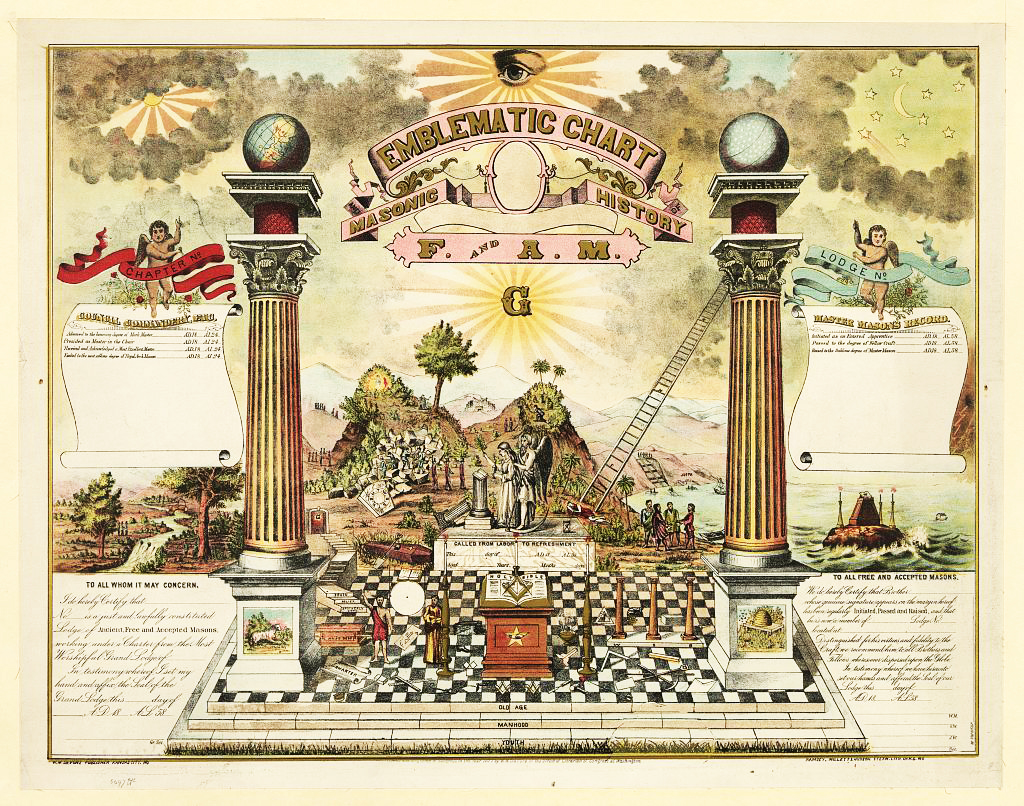 Les deux colonnes sont en fait un héritage du symbolisme égyptien lié aux pylônes figurant à l’extérieur du Temple surmonté d’une bannière ou d’un oriflamme. L’usage égyptien était de donner des noms à chacune d’entre elles, formant accolés ensuite une phrase. Mais une autre tradition fait remonter ces colonnes à la Kabbale.