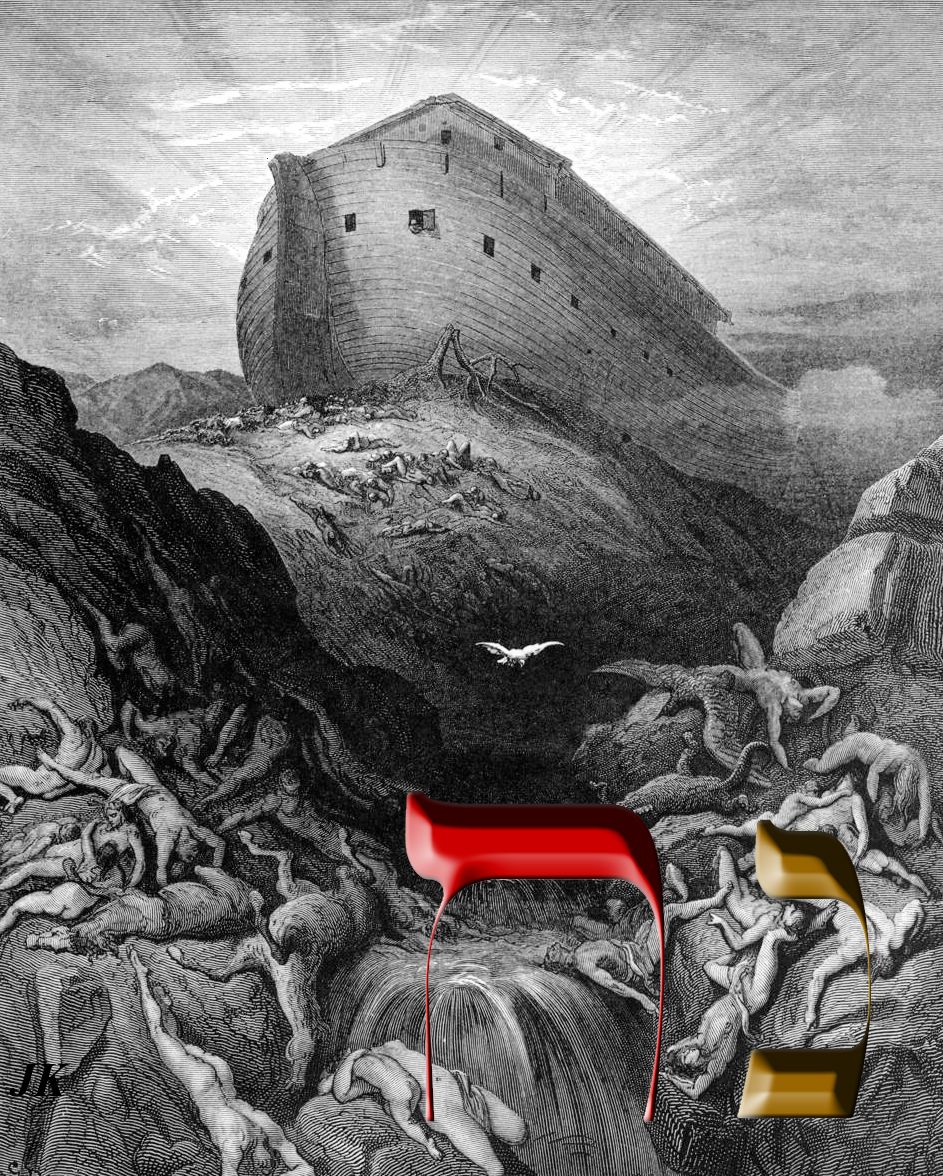 Noé eut une révélation dans laquelle il vit que la terre avait chancelé et que sa destruction était proche ; et, comme son grand père, Mathusalem, il dirigea alors prises, d’une voix triste, de l’écouter. Puis Noé dit à Hénoch : « Raconte-moi ce qui se passe sur la terre pour qu’elle peine et vacille de la sorte. Ne vais-je pas moi aussi périr avec elle ? » Aussitôt qu’il eut proféré ces paroles, une grande agitation de la terre se manifesta, une voix se fit entendre du haut du ciel, et Noé tomba face contre terre. Hénoch vint alors se tenir près de lui et lui dit que, si la destruction des habitants de l’aride était proche, c’est parce que ces derniers avaient percé non seulement tous les secrets des anges, mais aussi la violence et la toute puissance des satans, non seulement le mystère des mystères et la toute puissance des sorciers, mais parce qu’ils avaient également percé la puissance des sortilèges et la toute puissance de ceux qui fondent les métaux de la terre. Mais, comme Noé était pur de cet opprobre engendré par la connaissance de tous ces mystères, Hénoch lui révéla qu’il serait préservé du déluge, et que de sa descendance sortirait une source de Justes et de Saints innombrables, pour l’éternité (Hénoch » LXV, 1 à 12).