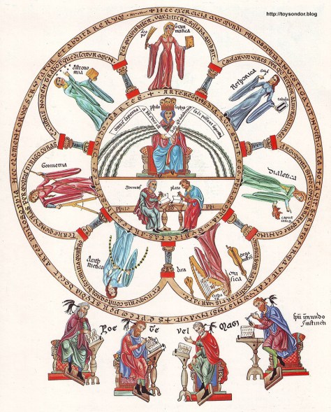 En établissant un lien entre d’une part l’ascension platonicienne du ciel grâce aux sept arts libéraux et d’autre part la haute grâce du Christ dans le ciel, le Regius, dont le rite de réception en loge était calqué sur le rite bénédictin de l’émission monastique des voeux, s’est donc basé sur l’analogie qui existait entre l’ascension platonicienne du ciel grâce aux sept arts libéraux et l’échelle céleste de l’humilité en douze et un degrés du chapitre VII de la règle bénédictine, échelle bénédictine qui n’était elle-même qu’une reprise de l’échelle céleste en quatorze degrés proposée par l’abbé Pinufius au livre IV des Institutions cénobitiques de Jean Cassien, et dont les élément socio-religieux de type monastique ne pouvaient être proposés directement aux non-moines qu’étaient les francs-maçons : c’est pourquoi, ne pouvant reprendre telle quelle l’échelle céleste du chapitre VII de la Règle de saint Benoît dont le chapitre LVIII leur servait pourtant à élaborer leur rite de réception en loge, les auteurs du Regius décidèrent de substituer à cette échelle céleste du chapitre VII de la Regula monachorum son équivalent platonicien : l’échelle encyclopédique décrite par Platon en République VII.