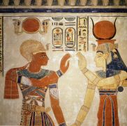 « A Thèbes, sur le tombeau des Osmandias, les reines ont les plus hautes couronnes solaires à trois cercles, les reines sont là avec leurs filles et rien n’est dit du père, remarque Diodore, ce qui indique le matriarcat pur. Ces reines sont solaires, car elles ont l’attribut des trois couronnes, remarque Bachofen.