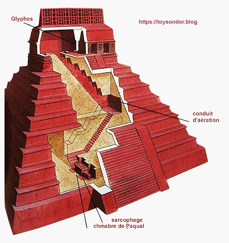 En 1949, l’archéologue mexicain Alberto Ruiz découvre un faux plancher dans le temple des inscriptions de Palenque. En enlevant le dalles de pierre il découvre un escalier descendant vers l’intérieur de la pyramide mais le passage est bloqué par d’énormes quantités de gravats.