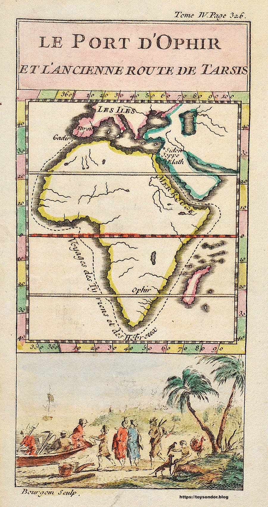 Versets 26 à 28 du chapitre IX du Ier livre des Rois : « Le roi Salomon construisit des navires à Etsjon-Géber près d’Eloth, sur les bords de la mer rouge, dans le pays d’Edom. Et Hiram décida d’envoyer sur lesdits navires auprès des serviteurs de Salomon ses propres serviteurs, c’est à a dire des matelots connaissant parfaitement la mer. Ils allèrent à Ophir et ils prirent de l’or, quatre cent vingt talents qu’ils apportèrent à Salomon ».