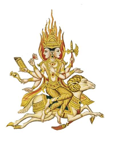 La force active masculine porte beaucoup de noms, selon le rôle qu’on lui attribue dans l’Univers. On l’appelle Savitri, de la racine sû, engendrer ; Twashtri, de la racine twax tailler, modeler, par exemple, une pièce de bois et alors twashtri veut dire charpentier; Agni, le feu, comme force vitale et vivificateur, etc.