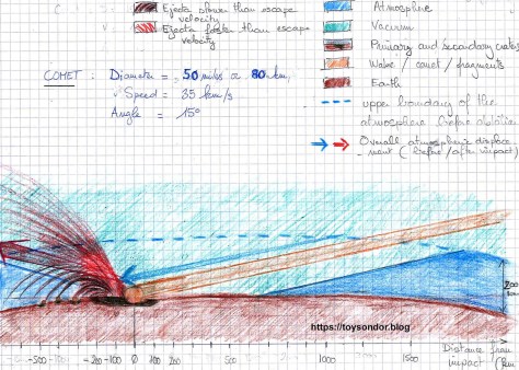 Parallèlement à la frontière du Dryas récent, une seconde frontière contient également des concentrations élevées de matériaux d’impacts extraterrestres : la frontière du Crétacé-Tertiaire (K-T) également connue sous le nom de transition Crétacé-Paléocène, associée au célèbre impact de Chicxulub, qui marque une extinction de masse au cours de laquelle périrent les dinosaures.