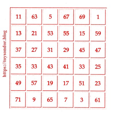 Esh Metsaref : « Ces paroles m’ont incité à chercher de semblables livres bons et secrets, et grâce à la bonne main de mon Dieu sur moi, j’ai trouvé ce que je t’enseigne maintenant. Et le Qaméa de ce métal est tout à fait merveilleux, car il se compose de six fois six cellules réticulaires, montrant partout la vertu admirable de la lettre Vav, liée à Tiféréth. Et toutes les colonnes et les lignes, de bas en haut, de droite à gauche et d’un angle à l’autre, donnent la même somme, et tu peux la transposer à l’infini. Et les différentes sommes observent toujours la même disposition, de sorte que leur plus petit nombre est toujours ternaire, nonaire ou sénaire, ou encore 3, 9, 6, et ainsi de suite. Sur cela je pourrai te révéler bien des choses. Maintenant je transcrirai un exemple dont la somme représente le nombre 216 de Ariéh, Lion), notre admirable Lion, 14 fois, qui est la valeur numérique de [zahav], l’or. Calcule et enrichis-toi ! »