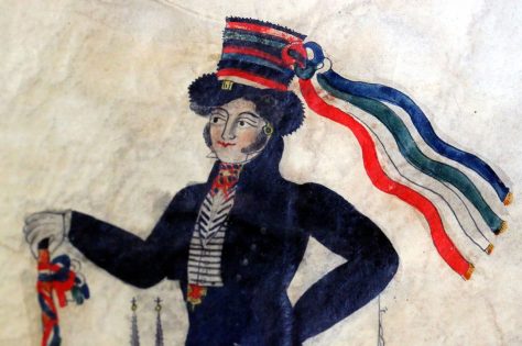 En effet, si aucun de leurs règlements du XVIIIe siècle ne mentionne la canne — qui semble n’être devenue que tardivement, au tout début du XiXe siècle, un attribut caractéristique et majeur des compagnonnages français- de nombreux articles y sont consacrés aux couleurs fleuries … »