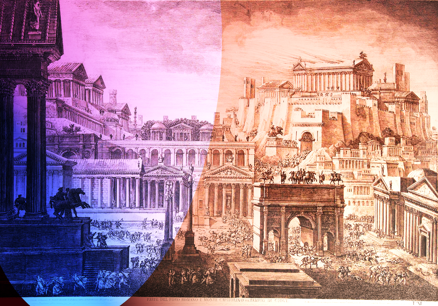 Sol invictus : Rome fut la dernière manifestation de la Tradition Primordiale. La tradition polaire (hyperboréenne) va progressivement faire place à la tradition solaire et à son nouveau culte du héros, incarnation du feu sacrificiel. Elle aura donné naissance à deux enfants naturels : Sparte et Rome (après sa fille Athéna) : le fratricide sera la règle.