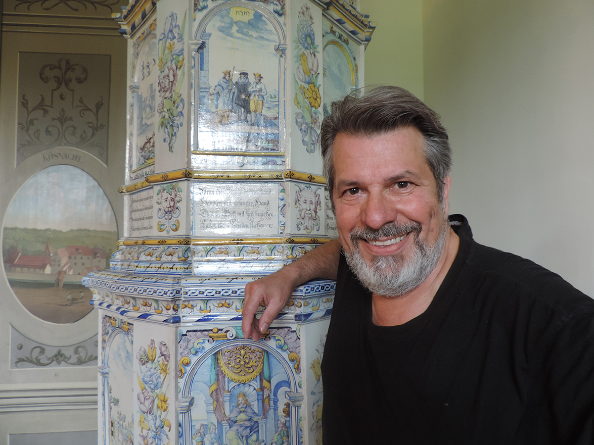 Johan Dreue pour vous aider à déchiffrer la Tradition primordiale loin des fumisteries habituelles et guider vos premiers pas. En photo à côté du poêle de Winterthur. Sa collection s’appelle et ce n’est pas pour rien : Lux in Arcana