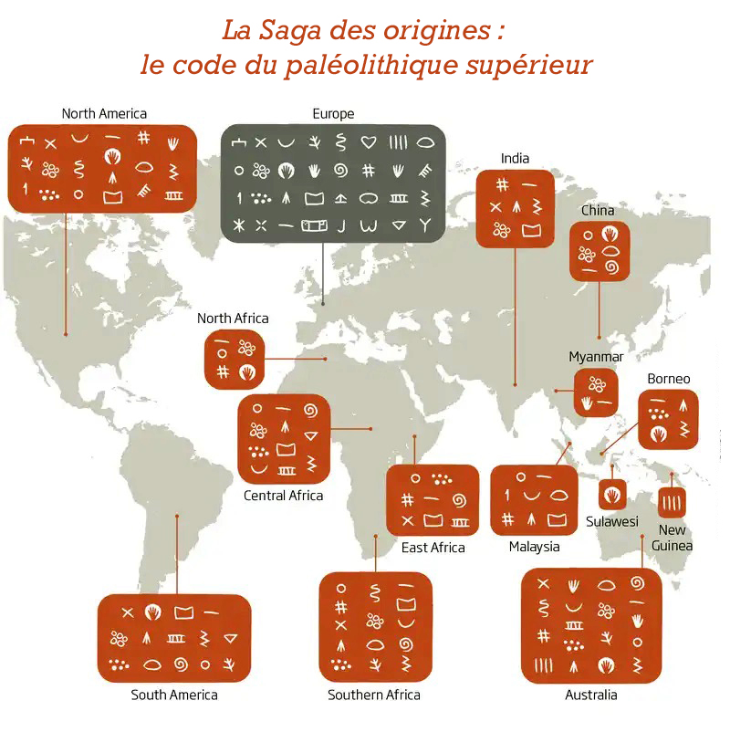 Les signes géométriques ont longtemps été considérés comme importants, et aucun chercheur en art pariétal ne les a négligés, du moins depuis les travaux précurseurs de Leroi-Gourhan au milieu des années 1960. Ce qui est nouveau et passionnant dans la recherche de l’anthropologue Geneviève von Petzinger, c’est que, grâce aux possibilités de l’ordinateur, elle a complété une base de données des signes géométriques de 146 grottes peintes, en essayant d’analyser leurs relations les unes avec les autres.