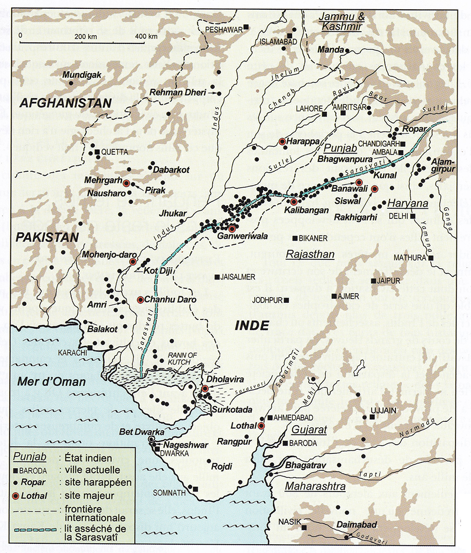 Oubliée par l’Histoire jusqu’à sa redécouverte dans les années 1920, la civilisation de l’Indus se range parmi les toutes premières civilisations, au même moment que la Mésopotamie et l’Égypte ancienne. Avec une superficie de 2,5 millions de kilomètres carrés, il s’agissait à l’époque de la civilisation la plus étendue au monde : elle regroupait cinq millions de personnes, soit 10% de la population mondiale de l’époque. Cette civilisation, dite aussi civilisation harappéenne, qui s’étendait sur ce qui est aujourd’hui le Pakistan, l’Inde et l’Afghanistan, a subitement disparu vers 1900 av-JC, probablement victime d’un changement climatique. Puis a été oubliée, faute d’ouvrages monumentaux ayant traversé le temps comme les pyramides d’Egypte. On a simplement découvert, depuis les années 1920, plus d’un millier de sites : des maisons de briques séchées, des salles de bains, des puits, les premières toilettes au monde… Par contre, dans ses grandes villes divisées en quartiers, nuls temples, palais ou équipement militaire.