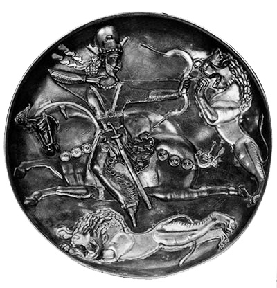 L’archer à cheval est bien le guerrier iranien par excellence, et ceci devient plus net encore à l’époque parthe; à partir des Arsacides jusqu’aux Sassanides, c’est le roi lui-même qui est volontiers représenté comme un archer à cheval. Mais déjà, dans l’inscription qui ornait son tombeau, Darius proclamait fièrement « Je fus parfait cavalier, et parfait archer ». Le cheval blanc, d’autre part, signifie, pour les Indo-Européens en général et les Indo-Iraniens en particulier la première fonction, de Souveraineté.