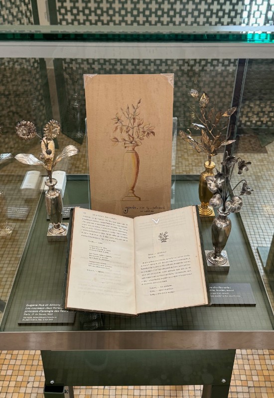 Dans sa main gauche, Clémence tient deux fleurs : une « rose printanière » (rosa uernans) et une violette, cette violette d’or fin qu’on attribuait aux vainqueurs de Jeux Floraux. Cette violette, fleur d’amour, que célèbre la chanson populaire :