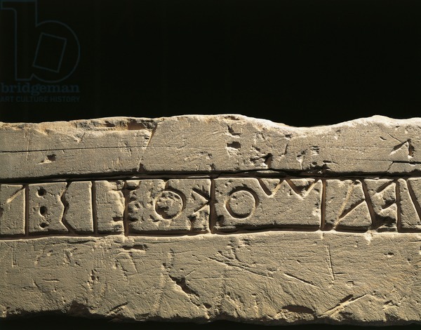 DGA601303 Inscription with dedication to deities, Detail of Celtic alphabet, from Prestino, Como province; (add.info.: Celtic civilization, Italy, 6th century b.C. Inscription with dedication to the deities. Detail of Celtic alphabet. From Prestino, Como province.