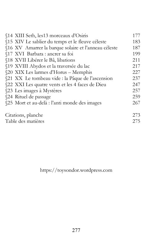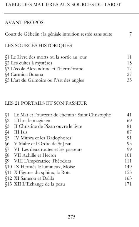 Au sommaire : le livre du « sortir au jour » et le Tarot, la diffusion médiévale : grimoire et sociétés secrètes, d’Anubis à St Christophe, « l’ouvroir de chemin », Aldébaran, Sirius, et les constellations du TAROT, une tour féconde mais assassine, la traversée des lacs et l’écrevisse, de briques et de broc ou le jugement de Dieu, la vision d’Ezéchiel et les 4 visages de Dieu, etc …
