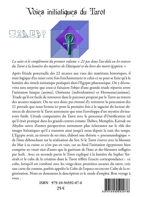 On y découvrira notamment le chiffre du principe féminin porté à sa perfection et les fiançailles d’Osiris et d’Isis à la suite de cette tribulation qui mène du Bateleur au corps glorifié du nouveau couron-né Au fond le Tarot se révèle être une école de psychostasie, celle des mystères antiques et un outil d’éveil initiatique pour celui qui veut naviguer et franchir les portes de l’Au-delà. Offre spéciale le Livre + le fascicule du Tarot égyptien pour les souscripteurs avant fin février.