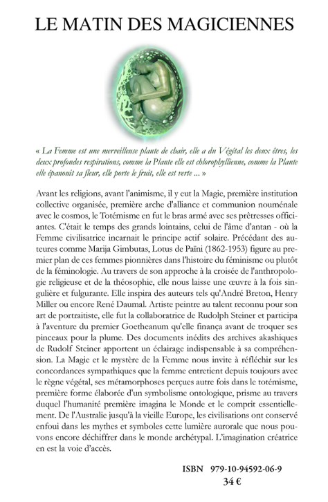 L’Esotérisme de la Vieille Légende du Cycle d’Anus. Suivis d’une traduction du Parsifal de Wagner. L’essai introductif est imprégné des conférences de Steiner mais aussi de folklore et de mysticisme gnostique, et la plume court, décolle dans des envolées teilhardistes avant l’heure, en train de se livrer déjà à ses propres intuitions en utilisant les influences dans lesquelles elle plonge ici (l’Anthroposophie, l’anthropologie, la pensée gnostique), comme des tremplins vers sa propre vision qu’elle maîtrisera totalement dix ans plus tard.