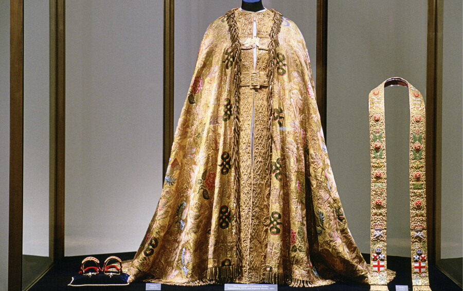 LONDON, UNITED KINGDOM – MARCH 31: The Sovereign’s Coronation Robes (supertunica And Imperial Mantle) In The Tower Of London. (Photo by Tim Graham Photo Library via Getty Images)
