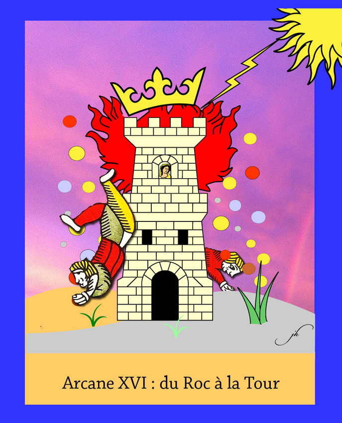 Concernant maintenant l’arcane XVI il convient de poser en préambule de mon récit que celle-ci doit être comprise selon plusieurs trames : une trame biblique, une trame païenne (celtico-chaldéique), une trame mythologique liée aux cultes des Saints en vogue alors et enfin une trame gnostique liée à l’Art du Grimoire tel qu’il nous a été transmis grâce à l’art des gots ou art d’Angler selon l’expression des « Pairs Peintres Anglés » réunis en différentes confréries secrètes au sein des corporations. C’est l’Adepte Fulcanelli qui remis à l’ordre du jour cette filiation à l’occasion de son déchiffrage de nos demeures philosophales. A ce sujet, on remarquera que toutes les lames commencent avec un « L » et ce n’est pas un hasard. N’oublions pas d’ajouter qu’à cette époque « Angle » et « Ange » s’équivalaient. L’étymologie même du mot Arkan signifie l’angle des angles (voir arcane 21). Citons enfin Grasset d’Orcet en guise de conclusion provisoire :