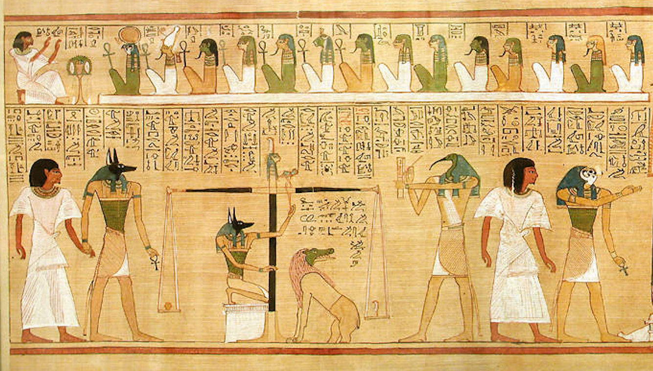 L’enquête avait d’abord commencé par l’étude d’une seule lame : l’arcane XVI. Quelle ne fut pas notre surprise de pouvoir en déceler le sous-bassement à la fois historique et mythologique d’une très grande profondeur. A ce stade la référence au Livre des morts égyptien ne m’était pas évidente et c’est en appliquant la méthode utilisée à ne autre carte, celle du Mat que le dessin tout entier du Tarot nous apparu dans sa simplicité aveuglante avec cette question un peu angoissante : est-ce là la vérité ? Il nous fallu nous rendre à l’évidence en répondant par la vérité : oui ! ce qui devait être un simple article s’est donc transformé en livre un an après. Le voilà … agrémenté de nombreux schémas explicatifs. Pour ne pas alourdir ce premier travail nous avons décidé de séparer les matériaux historiques des données relatives à la religion égyptienne d’où sont sorties de façon processionnelle (la déclinaison de l’UN-TOUT) selon ses hypostases néo-platoniciennes. Il y a bien une philosophie sous-jacente : la psychostasie.