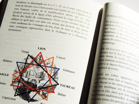 Dans les cérémonies du culte public on promenait processionnellement les figures du Tarot augural sous formes de statuettes à têtes d’animaux, car pour le vulgaire le symbolisme n’était pas le même que pour les Mages. C’est ainsi qu’Osiris : le soleil, était représenté avec une tête d’épervier et Isis, la divinité, par une statue voilée de noir, avec cette inscription :